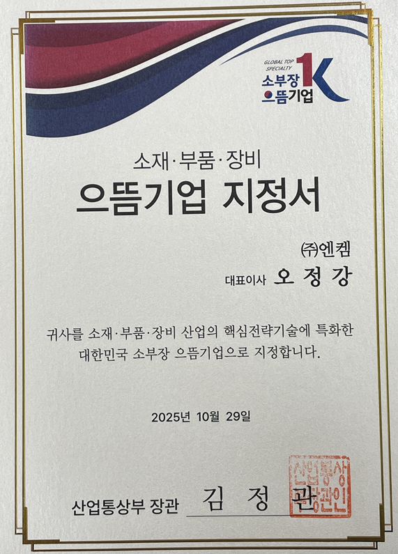 2025 소재부품장비 으뜸기업 지정서